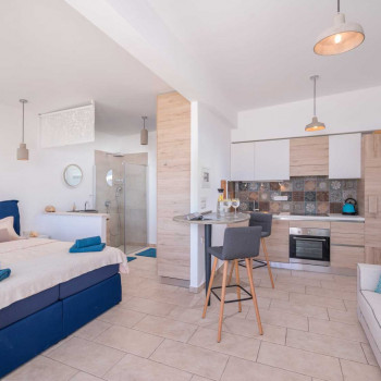 Die drei modern eingerichteten Appartements liegen seperat und eine ebene Tiefer zum Haupthaus. Die eigene großen Terrasse, sind ausgestattet mit Gartenmöbeln, bequemen Sonnenliegen und Schirmen.